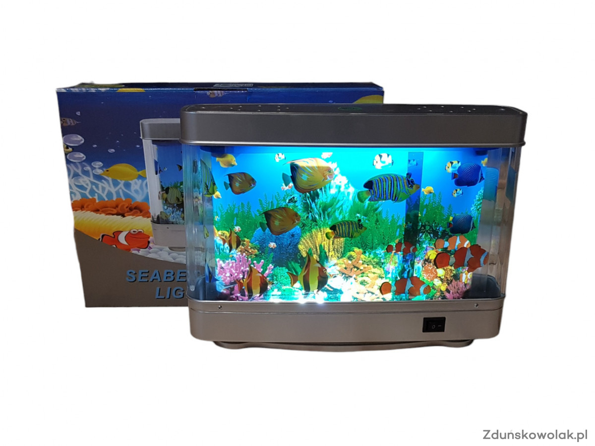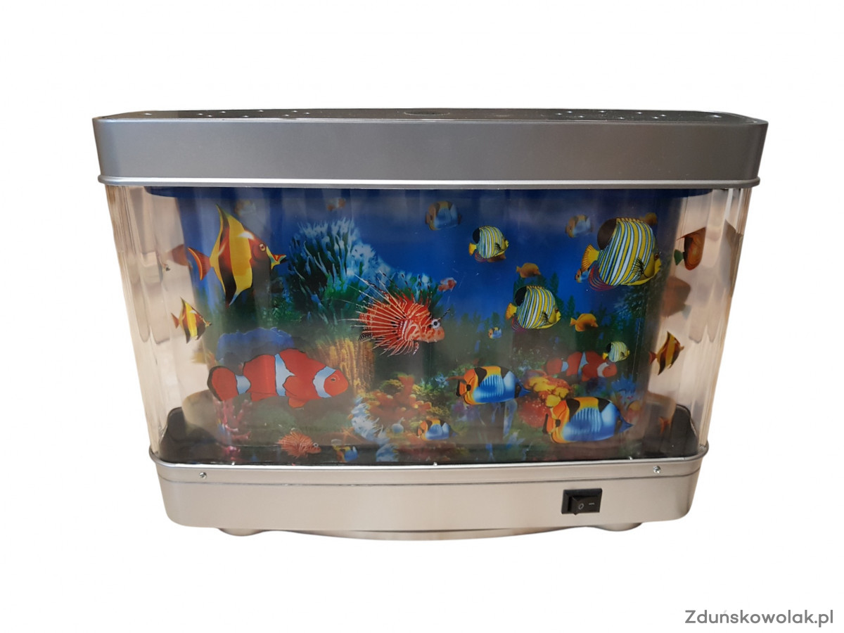 Dekoracyjna lampka nocna LED w kształcie sztucznego akwarium.
