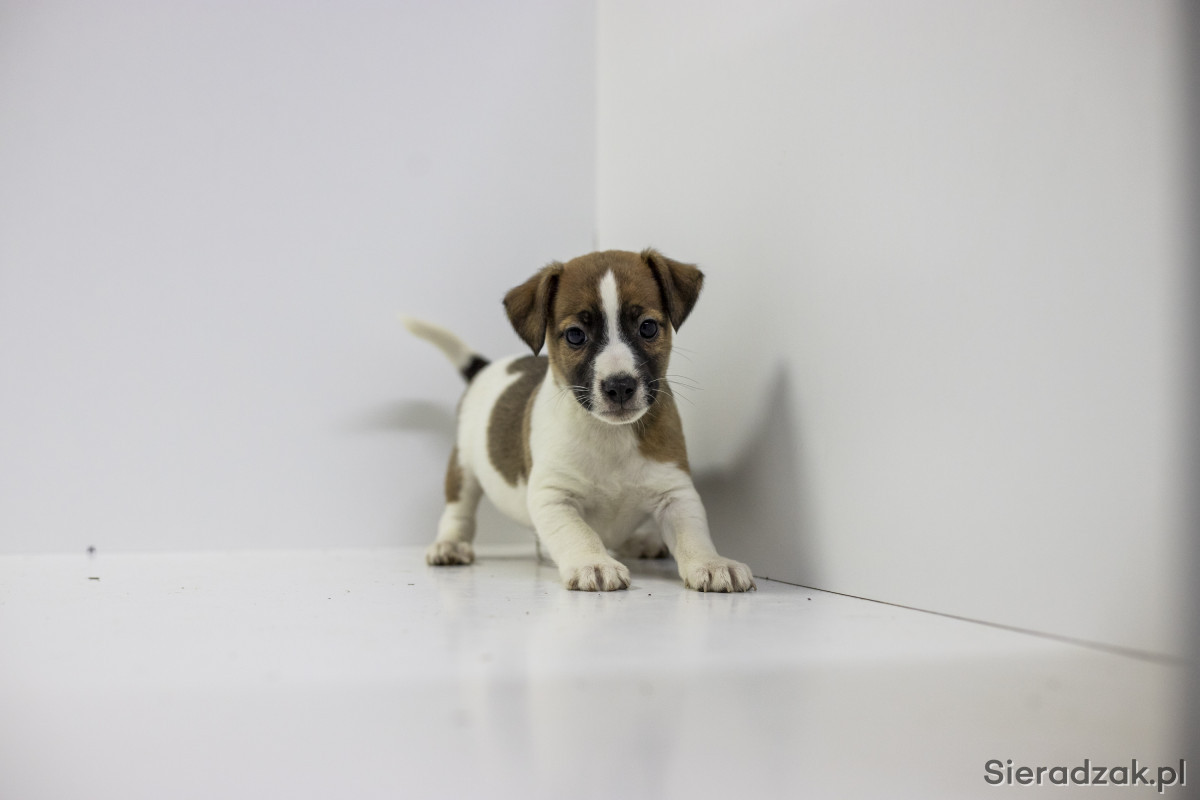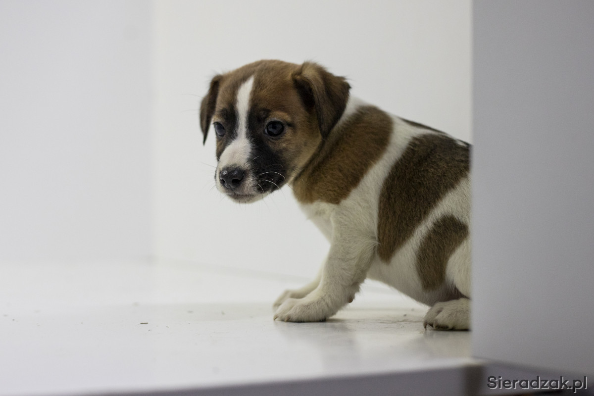 Pieski Jack Russell Terrier urodzone 20.08.2025 o pięknym gładkim włosie oraz krótkich łapkach.