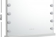 Lustro o wymiarach 58 x 45 cm ma elegancką, białą metalową podstawę, która nadaje mu nowoczesny wygląd.
