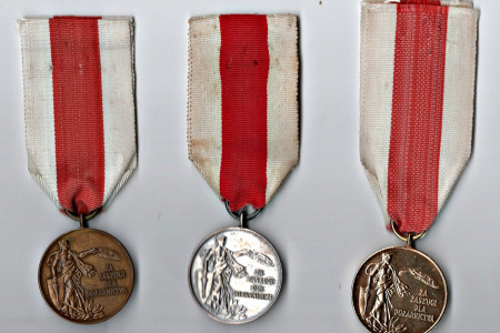 Komplet 3 medali:"Za zasługi dla OSP"- złoty, srebrny i brązowy.