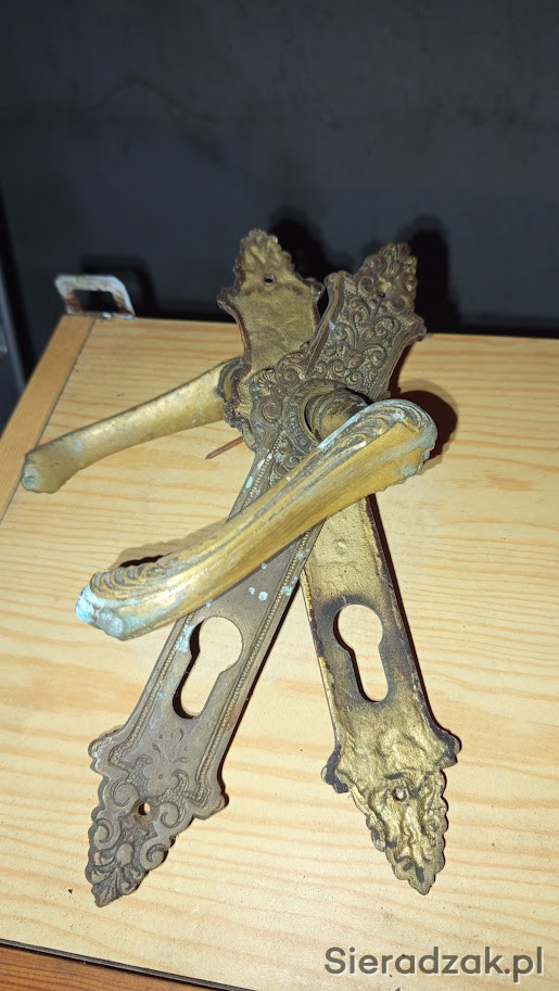 Do sprzedania retro klamka mosiężna.z szyldem.
