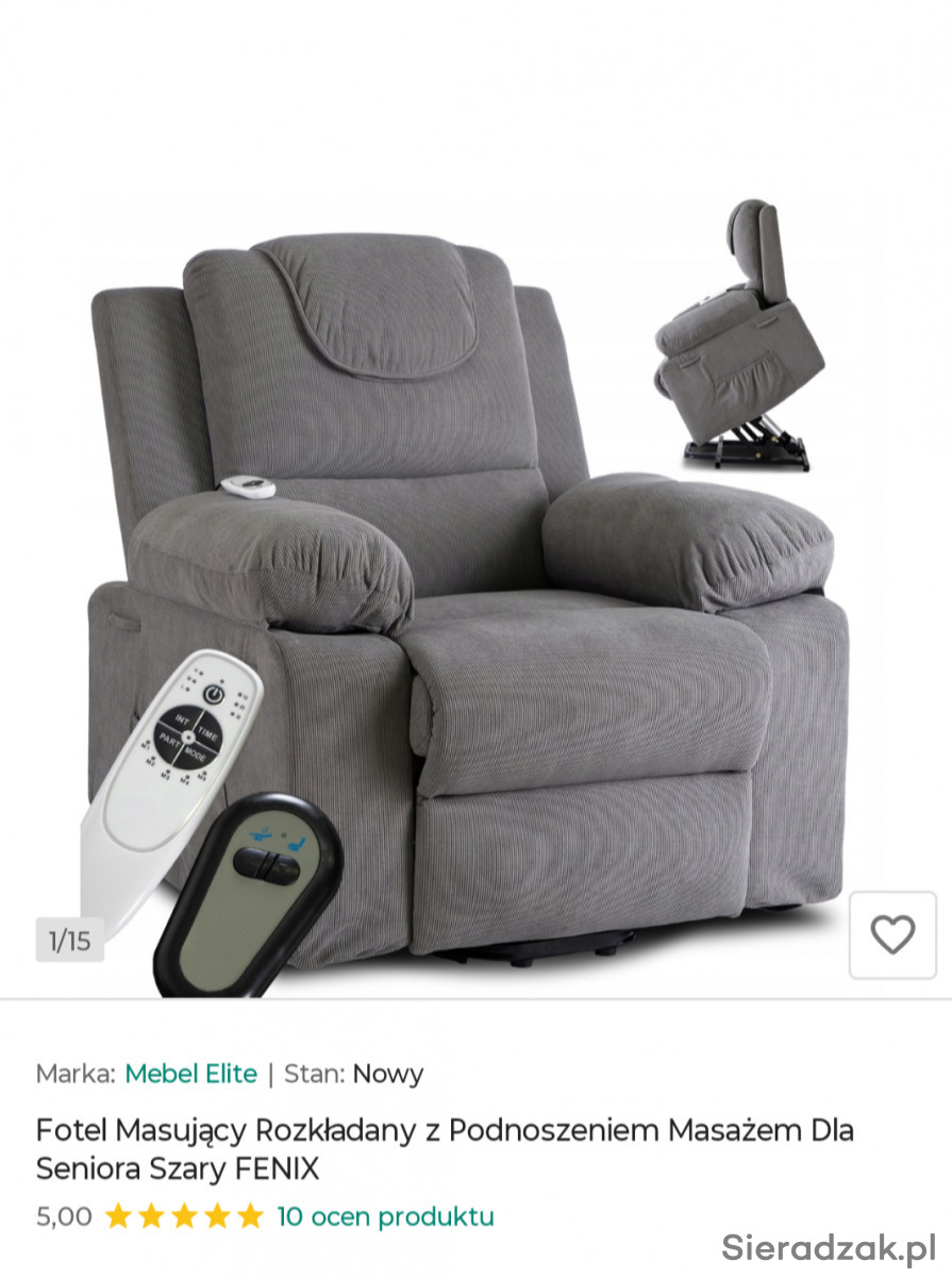Sprzedam nowy fotel rehabilitacyjny z funkcją masażu. Fotel używany przez 10 dni . Fotel posiada funkcję spania oraz pomocy przy wstawaniu. Tel 691019492