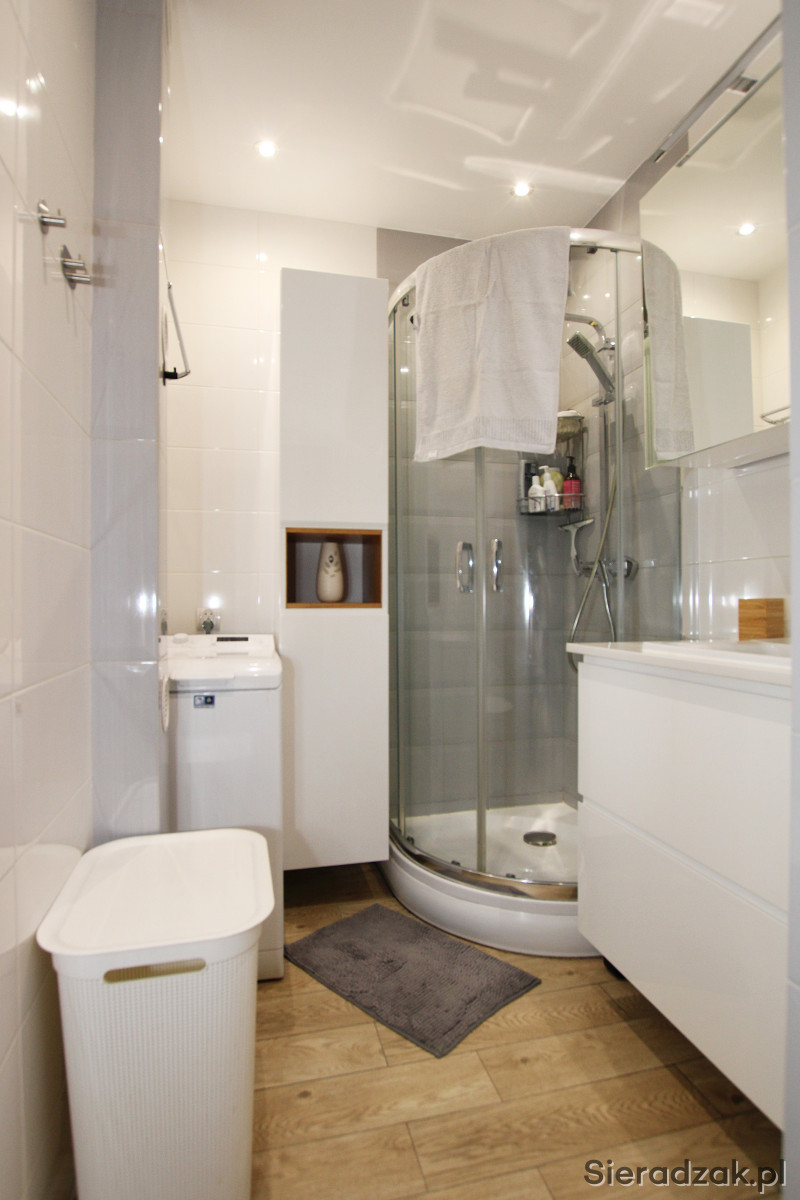 Kuchnia oraz łazienka wyposażona we wszystkie niezbędne urządzenia AGD (pralka, zmywarka, płyta gazowa, piekarnik).