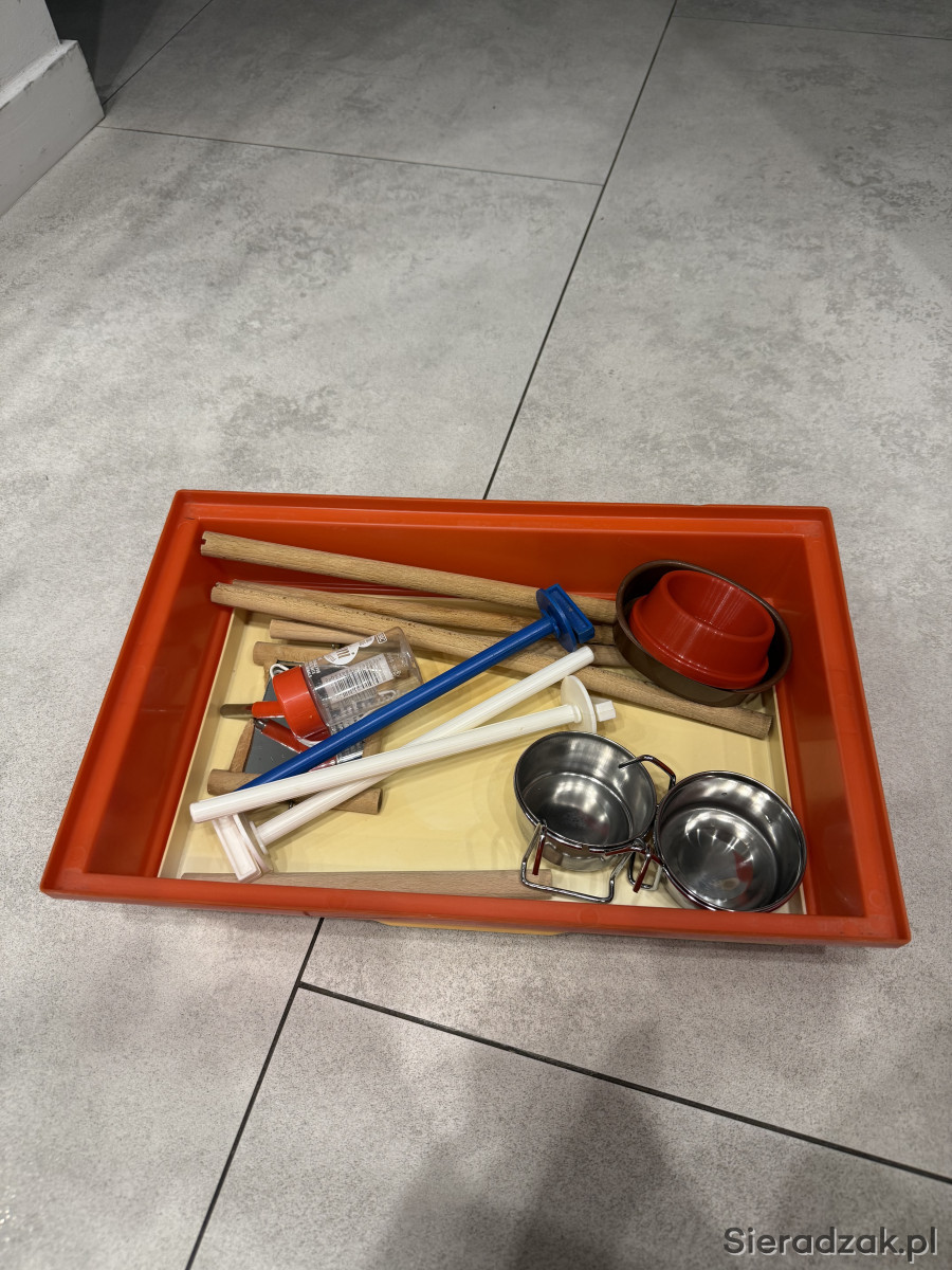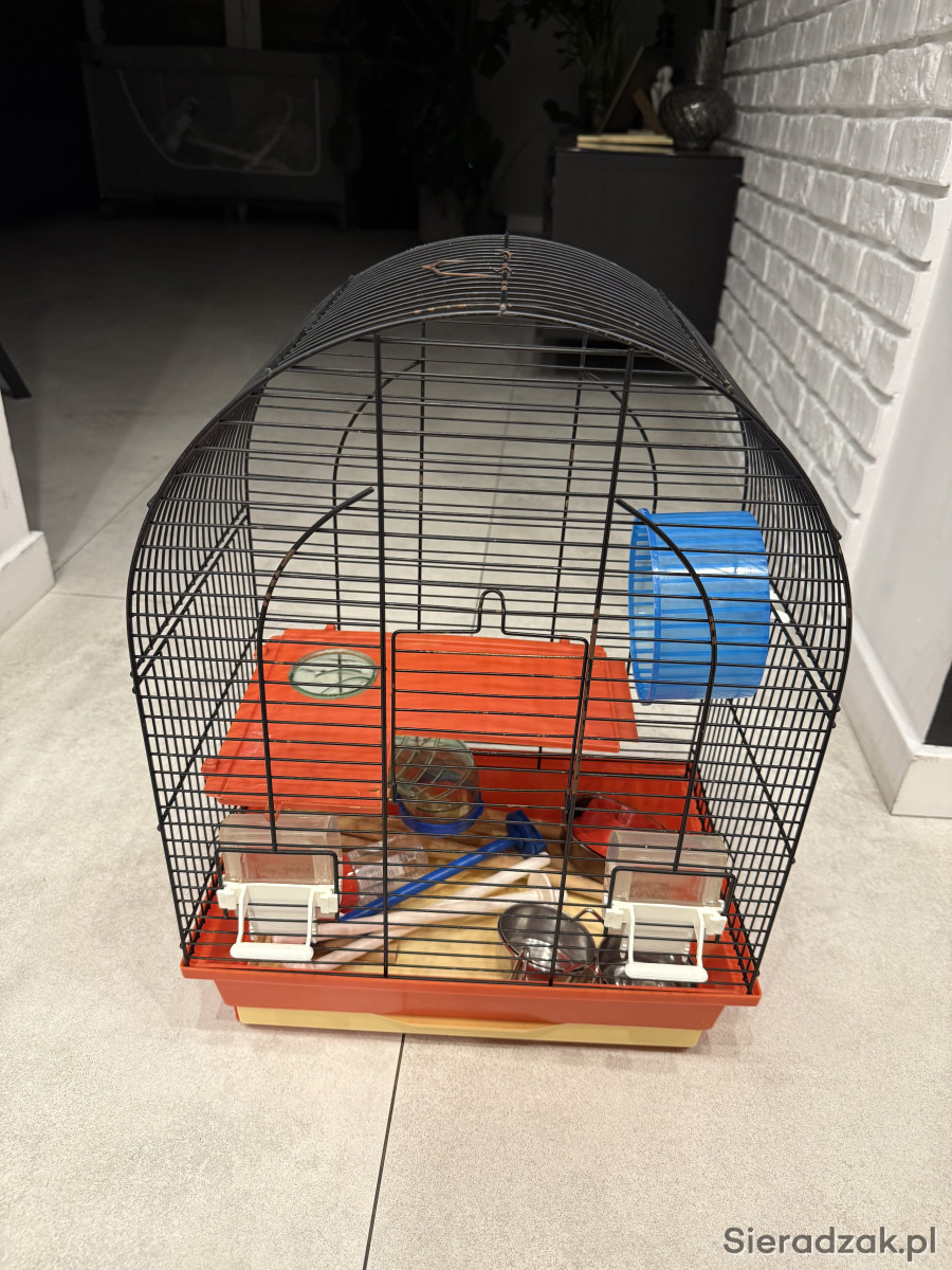 Mam do oddania klatkę. Miałem w niej zarówno papugi jak i chomika- stąd pomieszane wyposażenie :)