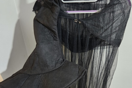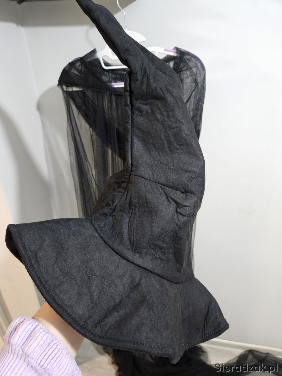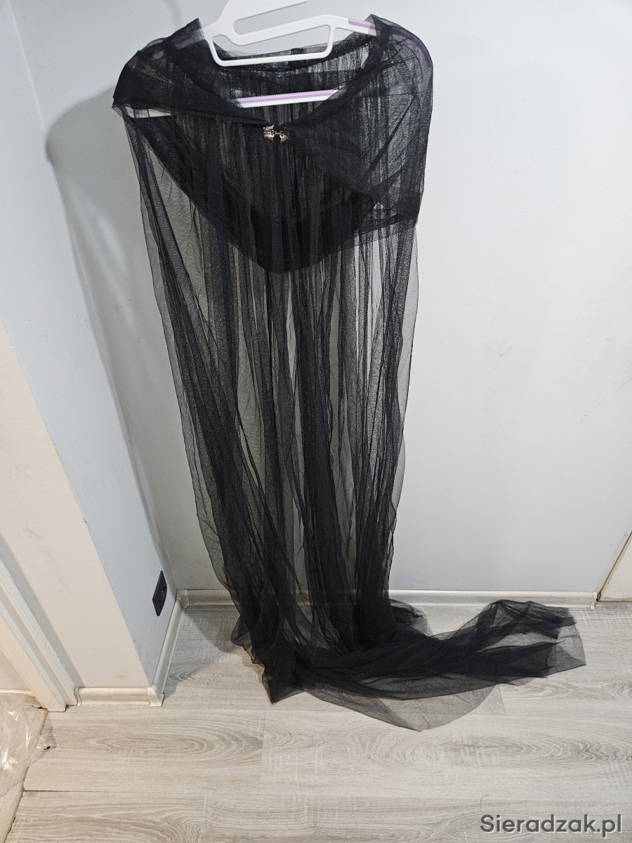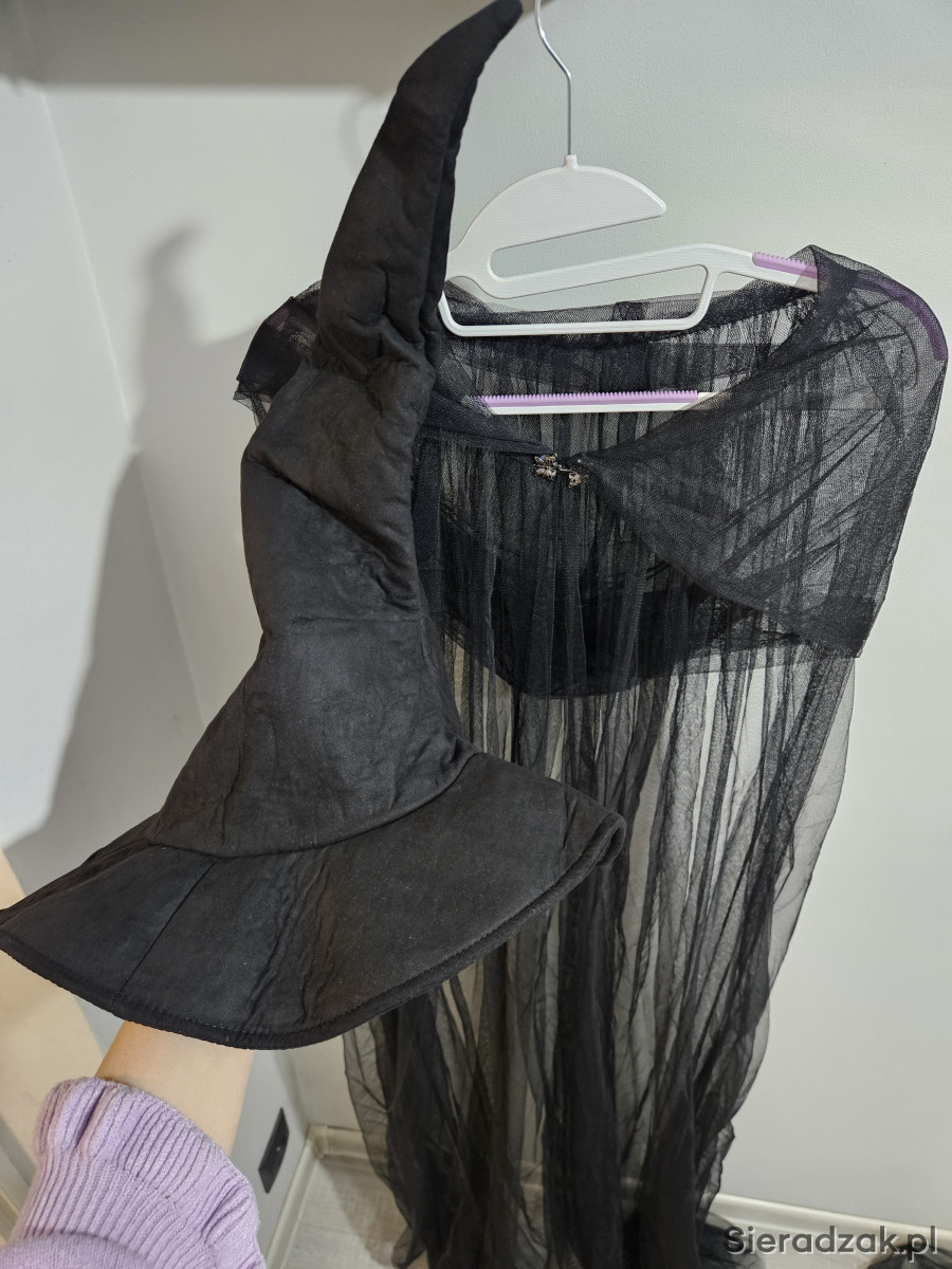 Czarna Peleryna z Kapeluszem Halloween Dorośli / Nastolatki Elegancka, długa czarna peleryna w lekko prześwitującym materiale. Idealna na Halloween, bal przebierańców, imprezy tematyczne albo sesje zdjęciowe. W zestawie czarny kapelusz, dzięki któremu można wyczarować styl czarodzieja, wiedźmy, maga albo wampira! • Długa, efektownie układająca się peleryna • Lekki, przewiewny materiał • Uniwersalny rozmiar (dorośli lub starsza młodzież) • Stan: nowy Cena za komplet: 69 zł