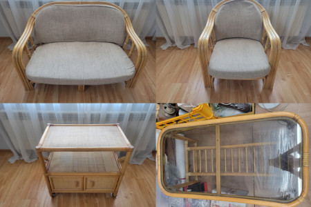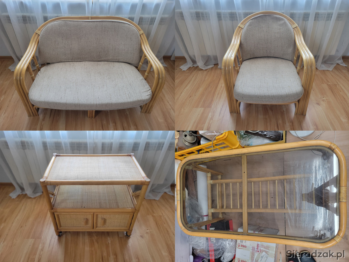 Zestaw mebli z rattanu. Sofa + 2 fotele + stolik + barek