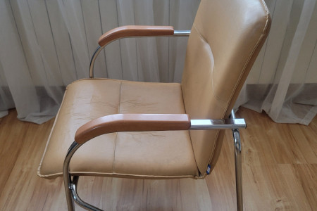 Krzesło w dobrym stanie. Jedynie tapicerka popękana na siedzeniu.