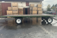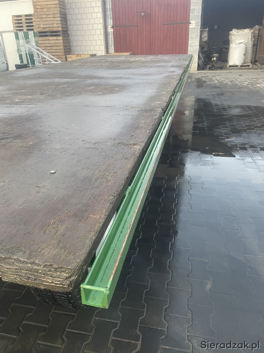 Sprzedam Lawetę do skrzyniopalet, Równie dobrze może służyć do przewozu bel. Laweta zrobiona na bazie przyczepy Autosan z nową ramą i wzmocniona od dołu kratownicą. Podłoga wykonana z płyt podłogowych z naczepy tirowskiej. 3 lata temu założone koła ciężarowe z nowymi felgami. Laweta ma wymiary typowo paletowe 7,2 x 2,4 m oraz jest przystosowana do podajnika do zbioru kapusty ponieważ ma wspawane po obu krawędziach ceowniki hutnicze 50 mm. Więcej informacji udzięlę telefonicznie.