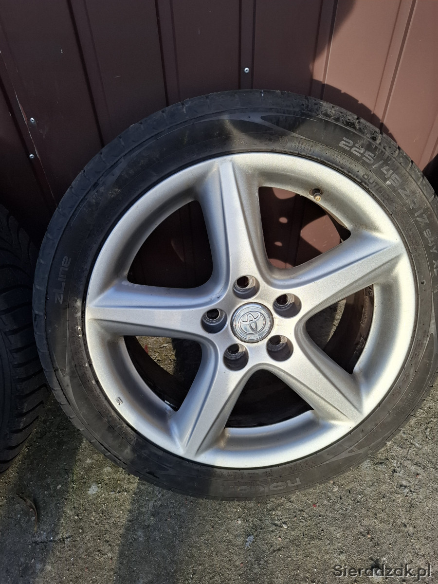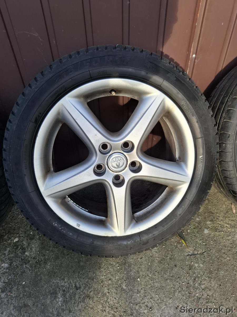 Sprzedam komplet orginalnych felg aluminiowych do toyoty R17 nigdy nie naprawiane. dokładne dane są podane na zdjęciach. Opony zimowe dodaję gratis ponieważ są tylko trzy zimówki a na jedne jest założone lato.
