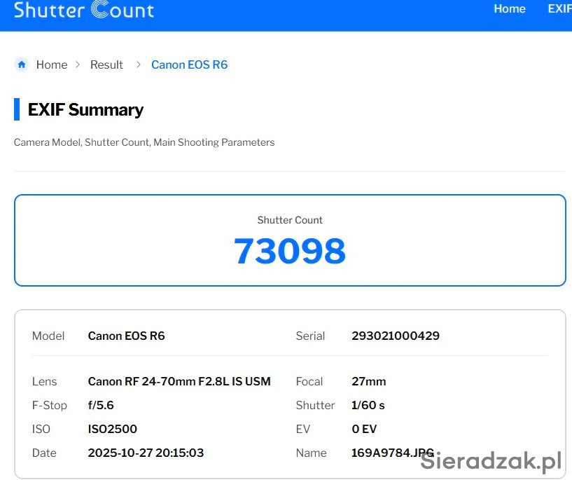 Do sprzedania bezlusterkowiec Canon R6. Aparat używany ale w idealnym stanie technicznym i wizualnym. Przebieg migawki 73098 (screen Shutter count). Robione tylko zdjęcia, nie kręcone filmy. Aparat kupiony w lutym 2023 r. (w zał. dowód zakupu). Aparat z pudełkiem, instrukcją, ładowarką, akumulator. Dodatkowo dla kupującego: 2 akumulatory Duracell, silikonowa osłona na aparat Easy Cover, uchwyt nadgarstkowy do aparatu, monopod Cullmann i plecak Delta SX-2 (widoczne na zał. zdjęciach). Zainteresowane osoby proszę o kontakt.