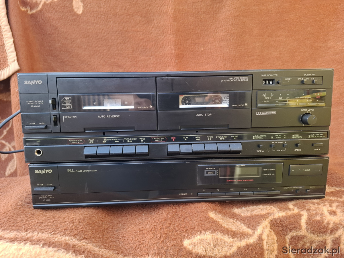 Sprzedam zestaw magetofon dwukasetowy i tunera marki Sanyo. Sprzęt technicznie sprawny (możliwość sprawdzenia) wizualnie posiada otarcia jak i niewielkie wgniotki co widać na zdjęciach.