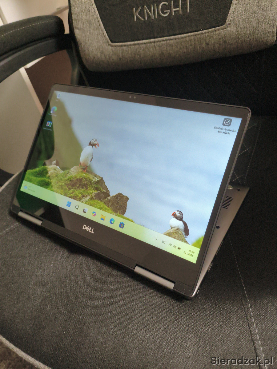 Na sprzedaż posiadam laptopa 13 cali Dell Inspiron 7373 360 stopni, jest to laptop typu 2 w 1, ponieważ posiada dotykowy ekran obsługiwany palcem jak w telefonie a ten ekran możemy jeszcze złożyć na płasko tak że robi nam się z laptopa tablet.