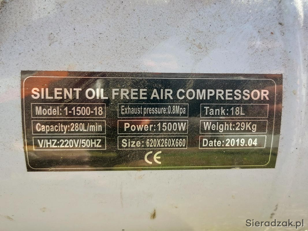 Sprzedam cichy kompresor olejowyo mocy 1500 W i pojemności zbiornika 18 litrów.