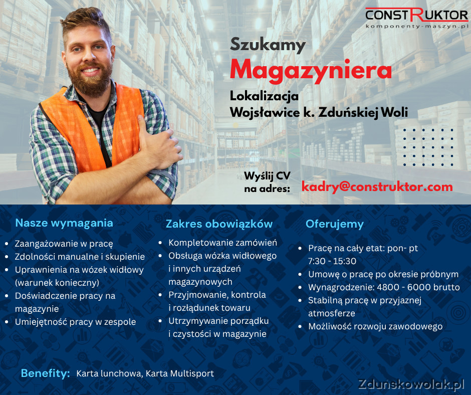 Nie tego szukasz? Przejrzyj inne oferty z tej kategorii (Rynek Pracy › Dam pracę › Praca stała › Magazyn i logistyka). Możesz też zawsze przejść na stronę główną lub skorzystać z wyszukiwarki. ⊗