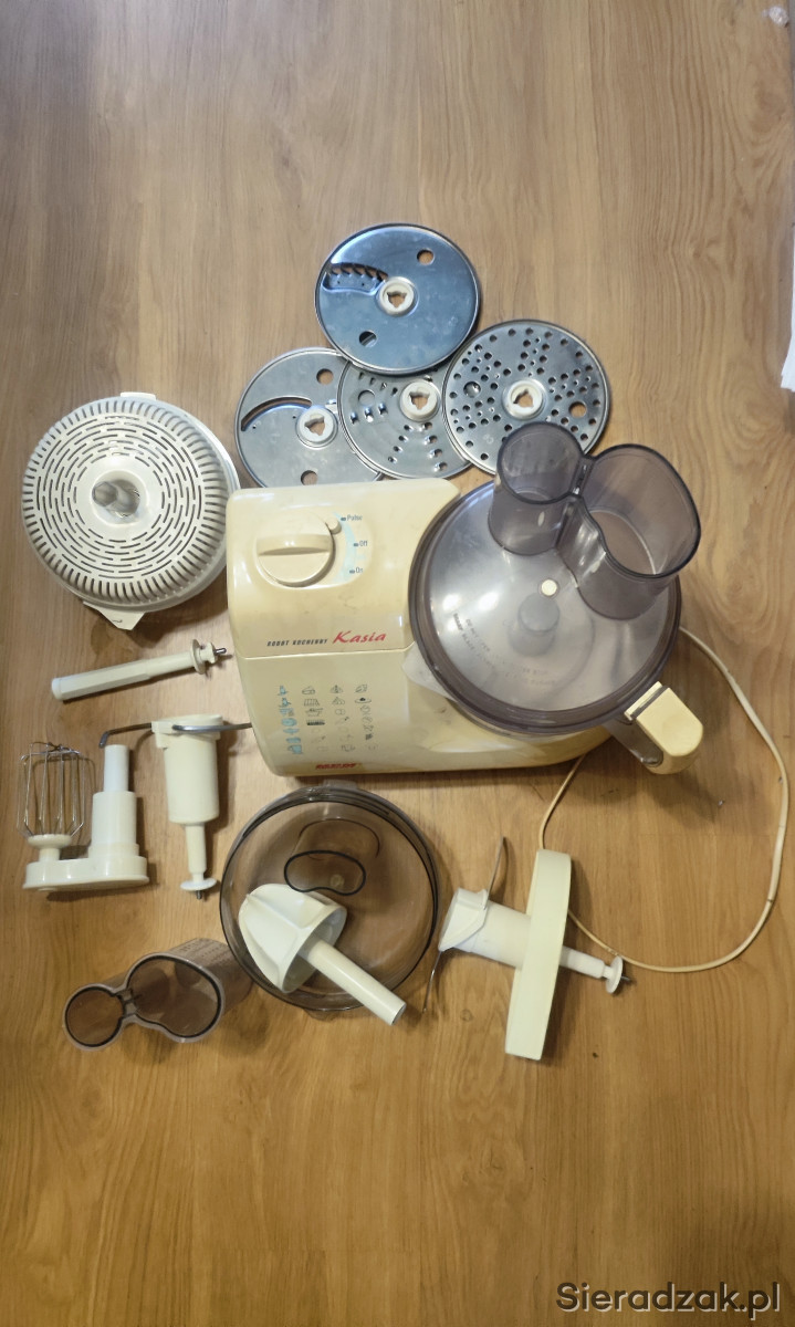 W skład zestawu wchodzą: Kombiwar z dwoma stojakami metalowymi, ma różne funkcje, od pieczenia jak w piekarniku luba aifrajerze po grillowanie (3 urządzenia w 1), mikser kasia ze wszystkimi końcówkami, płyta grzewcza elektryczna, i niezawodna maszynka do mielenia mięsa z dwoma ostrzami o różnej grubości oraz suszarka do owoców , ziół i grzybów. Odbiór w Sieradzu.
