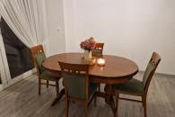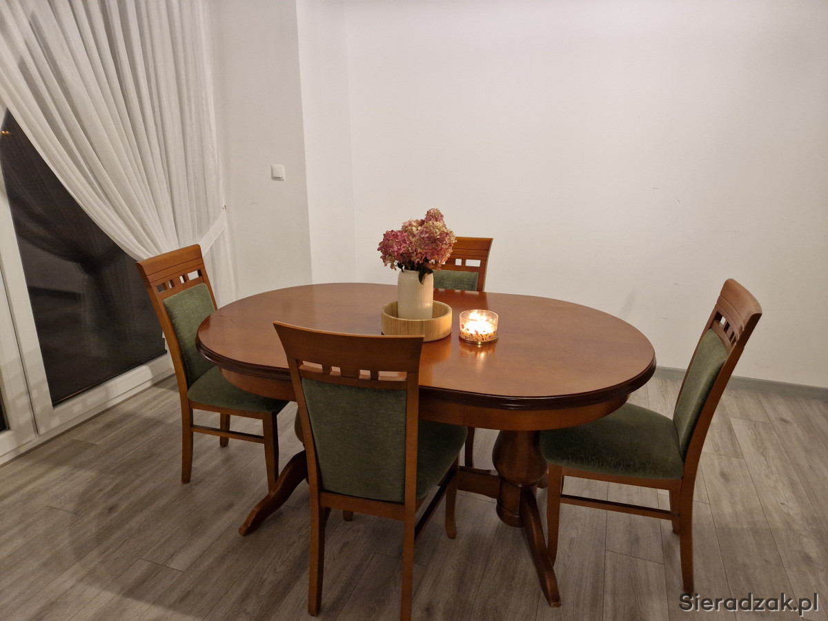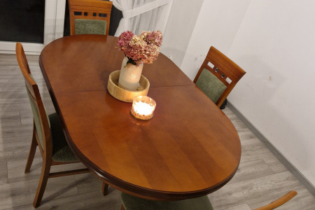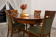 Stół został wyposażony w piękne nogi które są również bardzo praktyczne, ich utytułowanie ułatwia zasiadanie do posiłków . Obły blat pozwala na łatwe usadzenia gości a dwie dodatkowe wkładki sprawiają, ze w czasie uroczystości zasiąść przy nim swobodnie może nawet 12 osób.