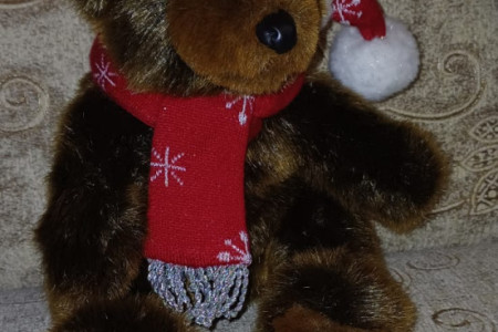 Niedźwiadek zabawka pluszowa w czapce i szaliku
