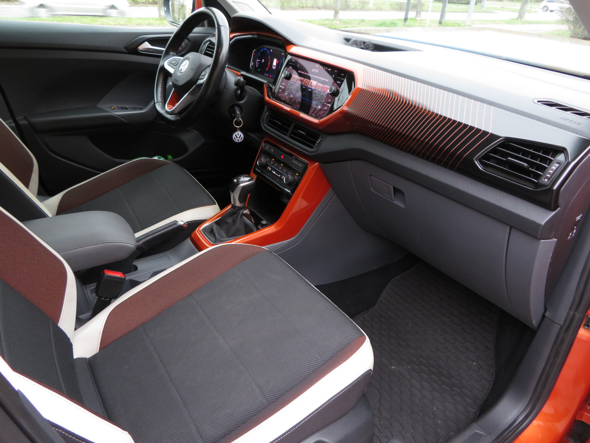 Sprzedam VW T-Cross 1.0 TSI z automatyczną siedmio biegową skrzynią biegów DSG. Jestem drugim włascicielem od dwóch lat. Jest to limitowana wersaja oryginalnym kolorze Energetik Orange wyposażony między innymi: automatyczną klimatyzacje, asystenta pasa ruchu, czujniki odległości przód i tył, asystent martwego pola, radio CD z Bluetooth, cyfrowy wyświetlacz - Virtual Cockpit, światła w technologii Full LED zopcją doswietlania zakrętów i wiele innych. Posiadam dwa kompety opon.