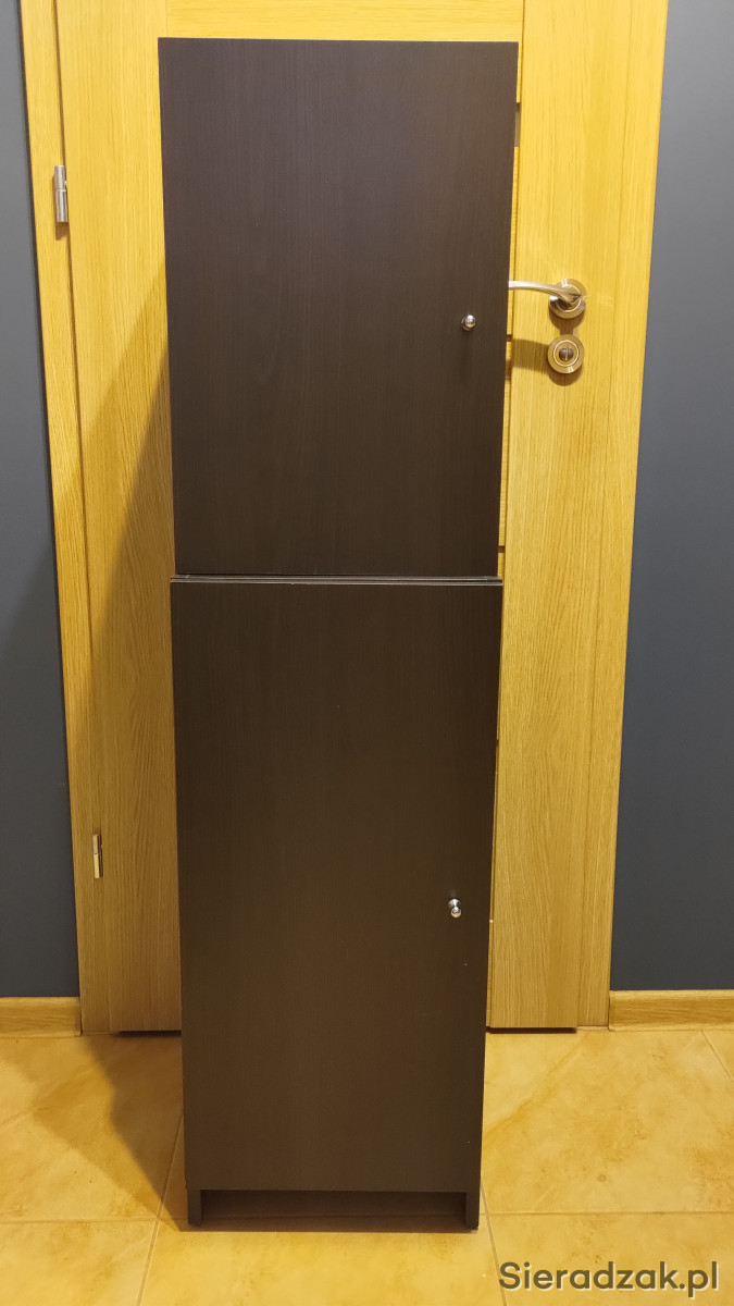 Nowe szafki łazienkowe w kolorze ciemnego drewna. Praktyczne i pojemne rozwiązanie do przechowywania kosmetyków i akcesoriów łazienkowych. Produkt nowy, powystawowy, gotowy do montażu.