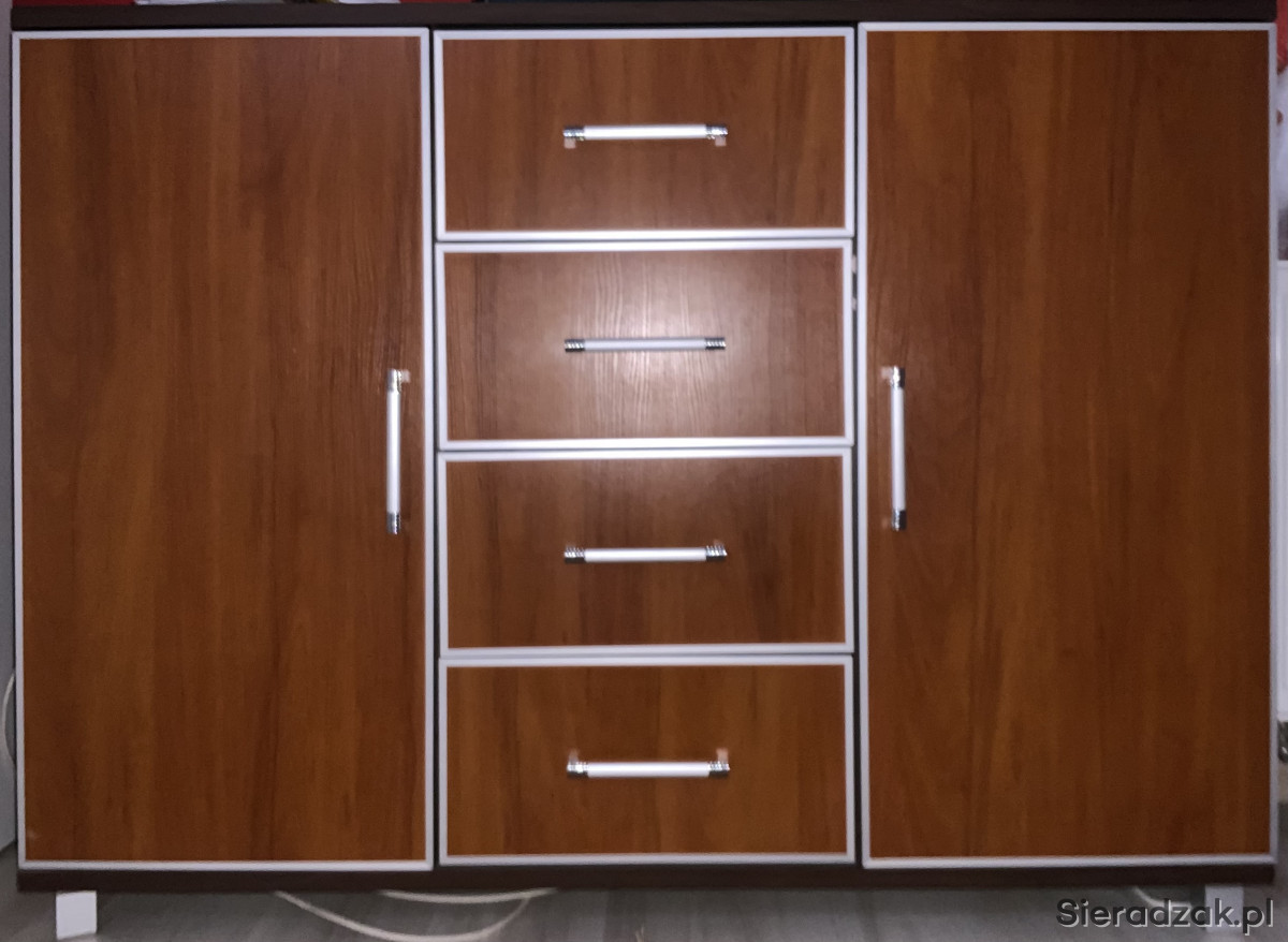 Sprzedam elegancki komplet mebli firmy Bodzio w kolorze orzech/jabłoń. Meble są solidne, zadbane i w bardzo dobrym stanie – gotowe do użytku, idealne do sypialni, salonu lub pokoju gościnnego.