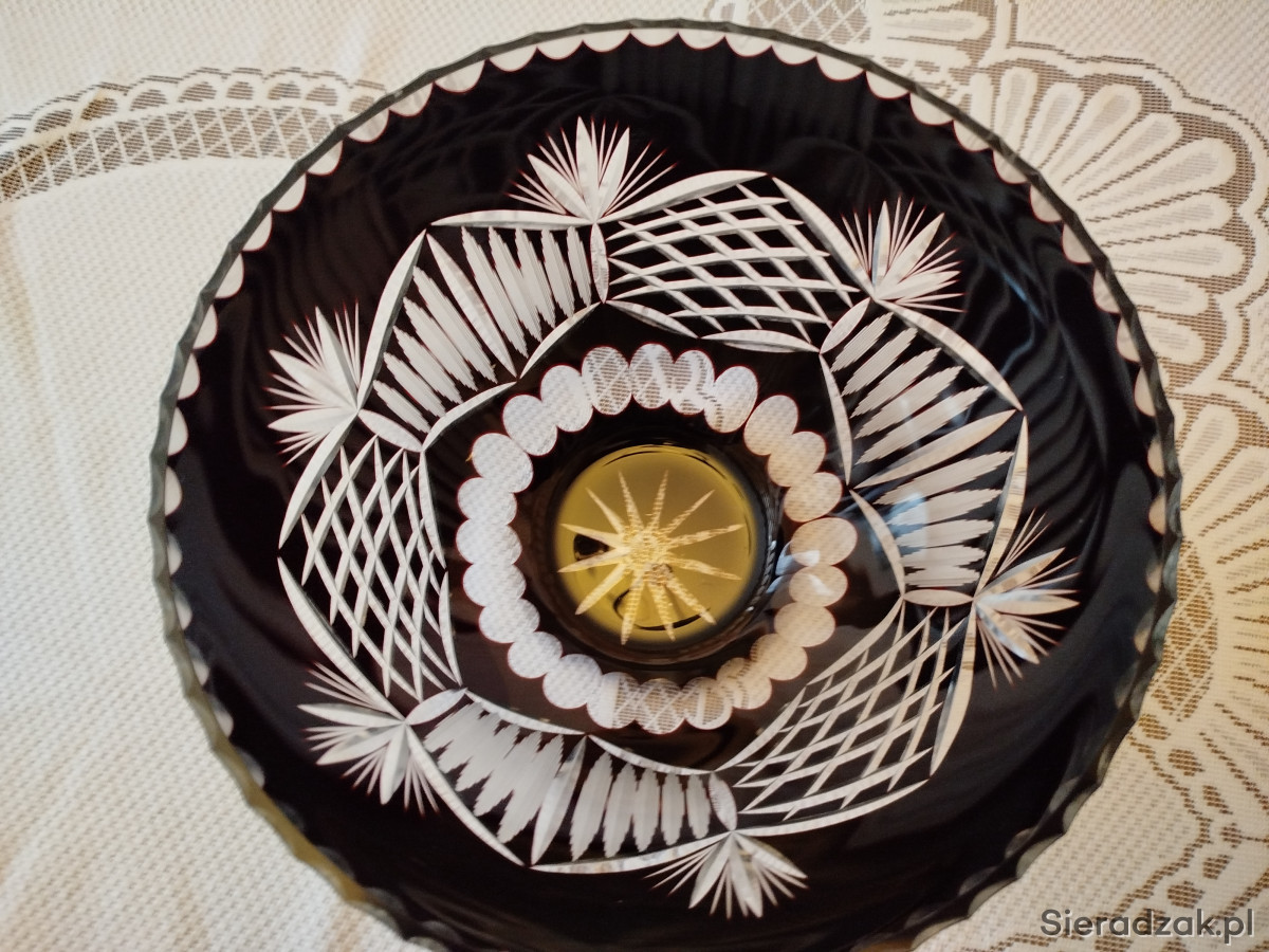Sprzedam piękną kryształową misę z lat 60-tych. Misa w kolorze śliwkowo - bordowoym. Kolor się zmienia w zależności od padającego światła. Wysokość misy to 13,0 cm a średnica otworu to 23,5 cm