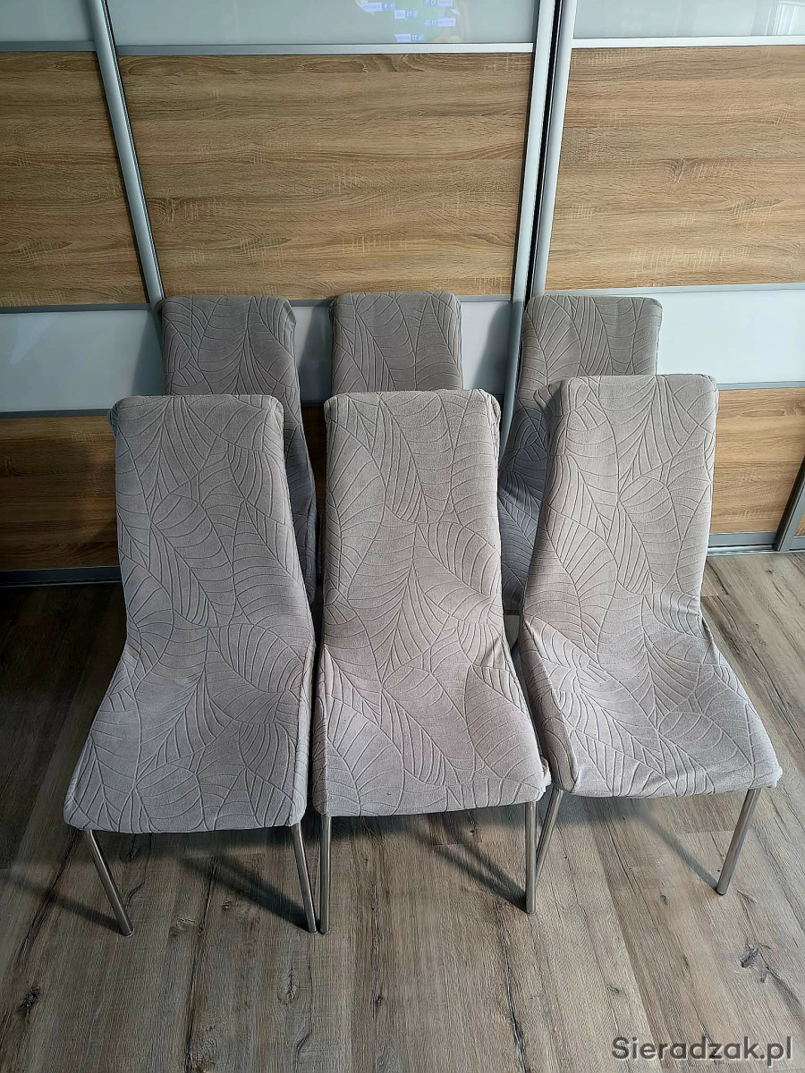 Krzesła 6szt. Szaro białe pikowane chromowane nogi. Stan jak na zdjęciach Pokrowce GRATIS