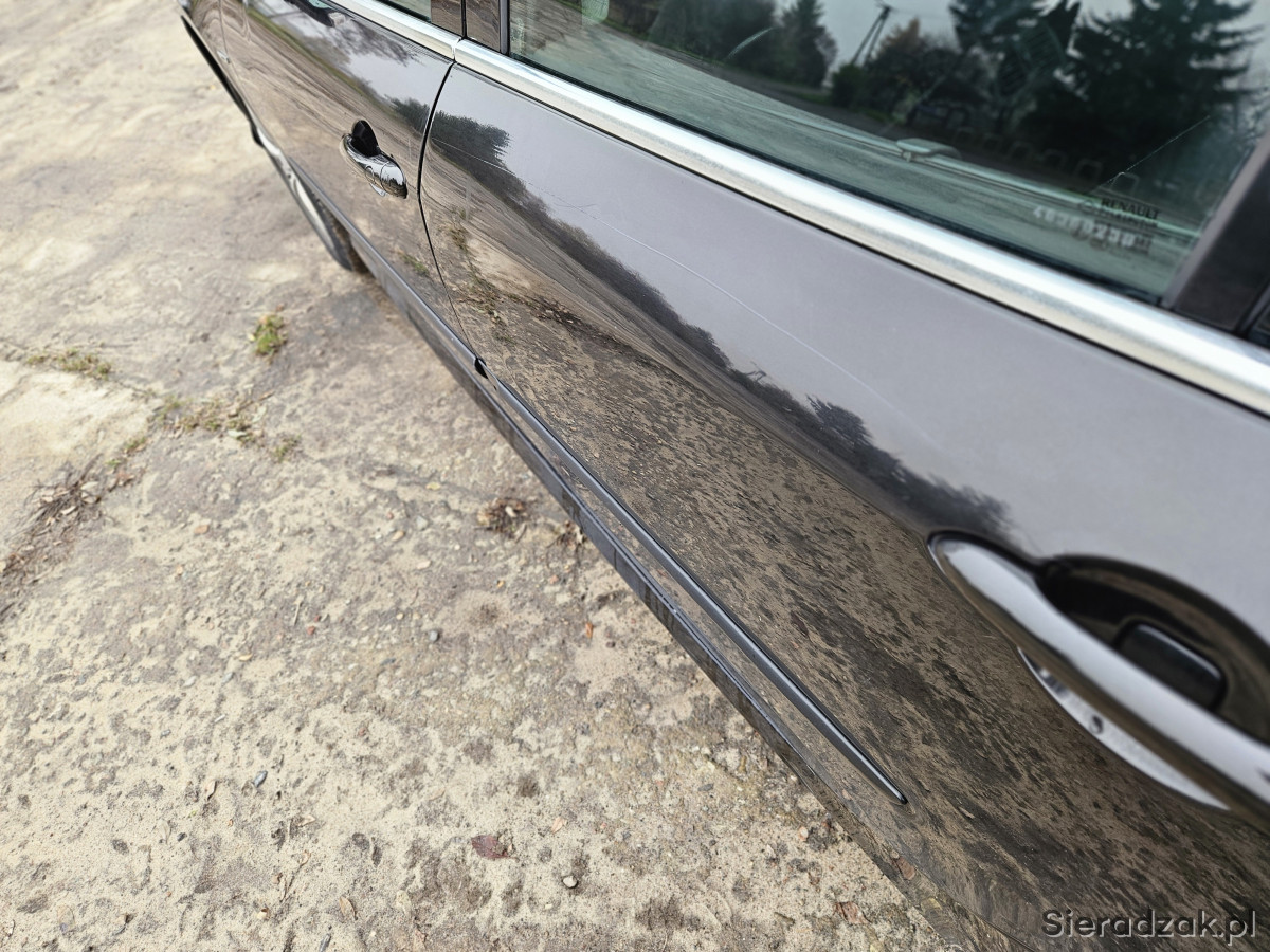 Lakier zadbany, z drobnymi śladami użytkowania — kilka rys parkingowych, w tym jedna bardziej widoczna na lewych tylnych drzwiach oraz odprysk lakieru na masce.