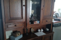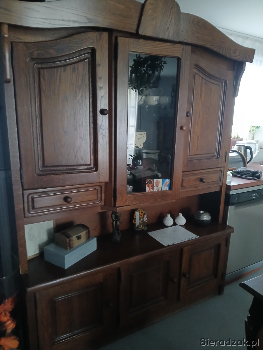 Sprzedam witrynę dębowa i ławę szklana z pufami cena zestawu 200 zl lub po 100 zl każdy osobno.cena do małej negocjacji.pisac SMS.