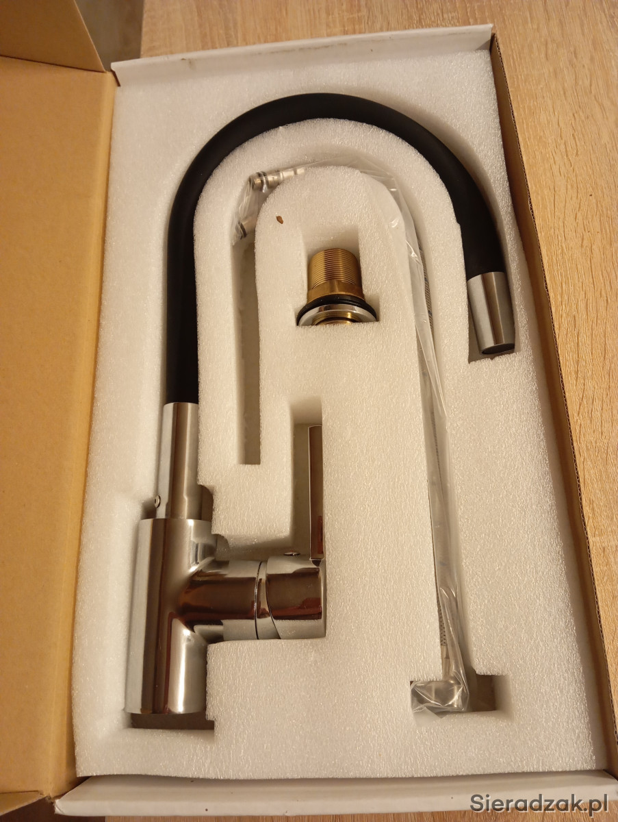 Sprzedam stojącą, nową i kompletną baterię w kolorze czarnym do zlewozmywaka czy umywalki. Bateria posiada giętką, ruchomą wylewkę świetnie sprawdzającą się np. w kuchni podczas nabierania wody do wysokiego garnka lub nalewania wody do wiadra stojącego poza umywalką POLECAM