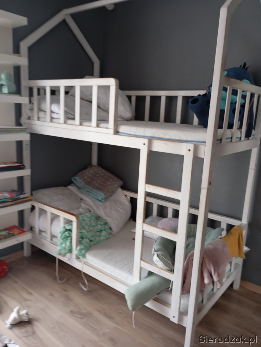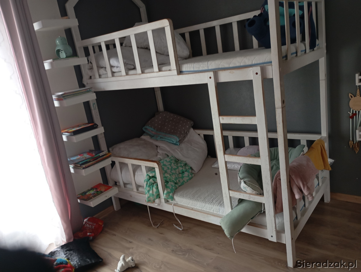 Łóżko piętrowe z materacami materace 180x90. Wysokość łóżka 246. Do łóżka jeszcze są dwie szuflady suwane. Łóżko jest do przemalowania. Można je zrobić na dwa osobne łóżka 724861848