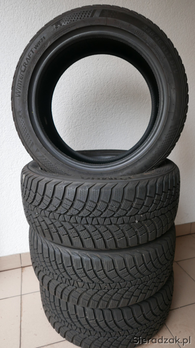 Sprzedam kpl. opon zimowych KUMHO WinterCraft WP71 235/45 R17 (4 szt.), zdemontowane z nowego auta (salon), przebieg do 20 km.