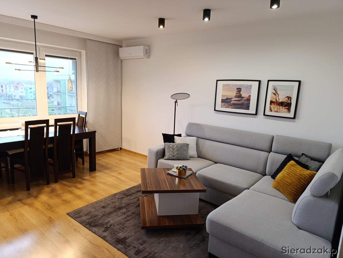 Mieszkanie o powierzchni 63,20m² z umeblowaniem,po remoncie: klimatyzacja, na ścianach gładzie, okna PCV, na podłogach panele i kafle, wymienione kaloryfery.
