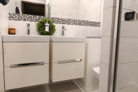 * oddzielne POMIESZCZENIE GOSPODARCZE (kiedyś wc) z szafą zabudowaną --obecnie służy jako pralnia.