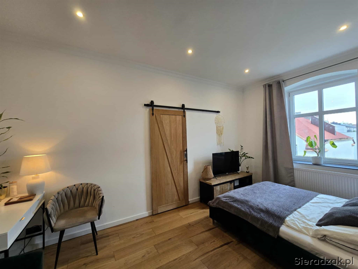 Mieszkanie jest piękne, wysokie, wyremontowane w odnowionej kamienicy w centrum miasta.