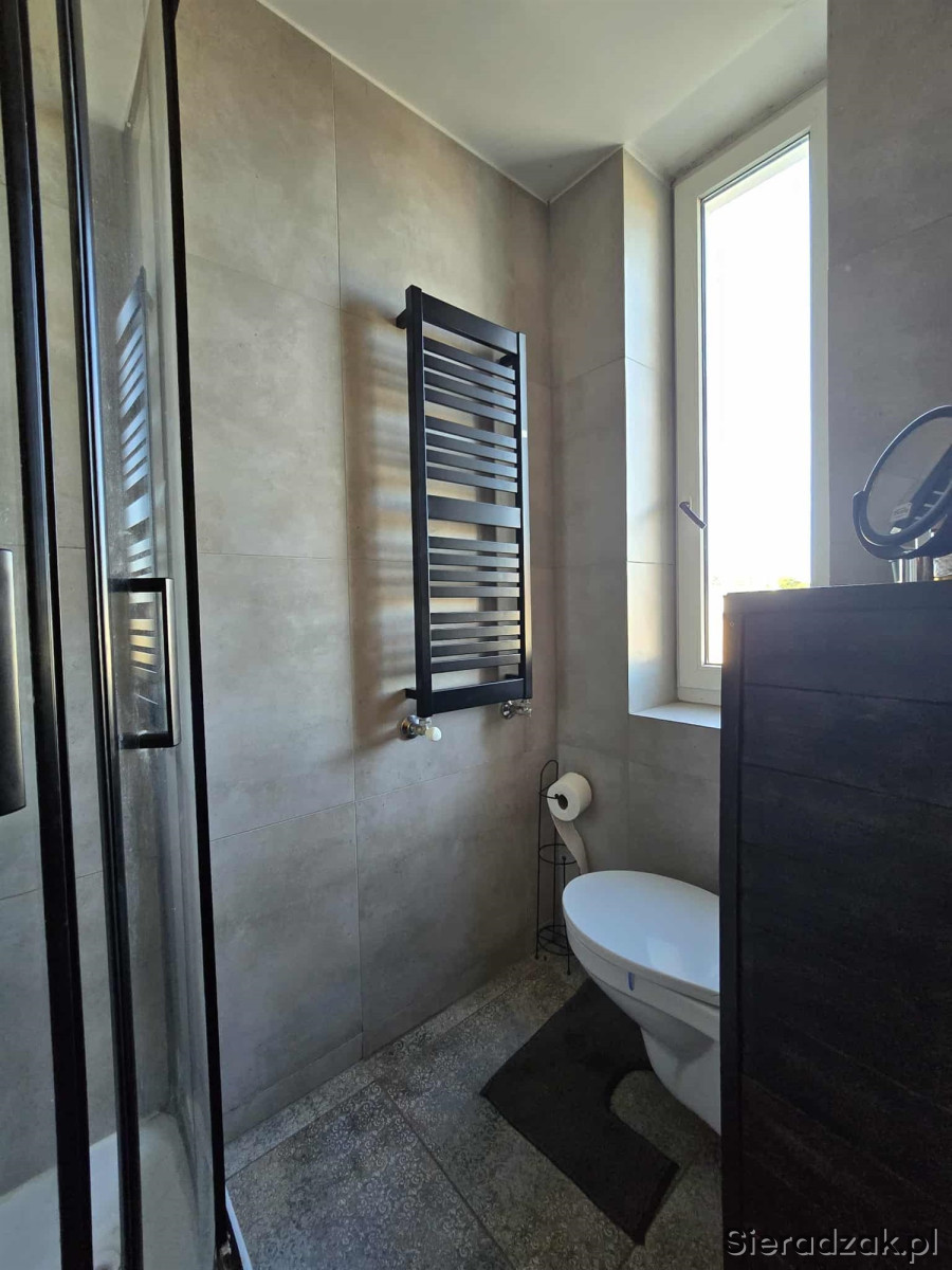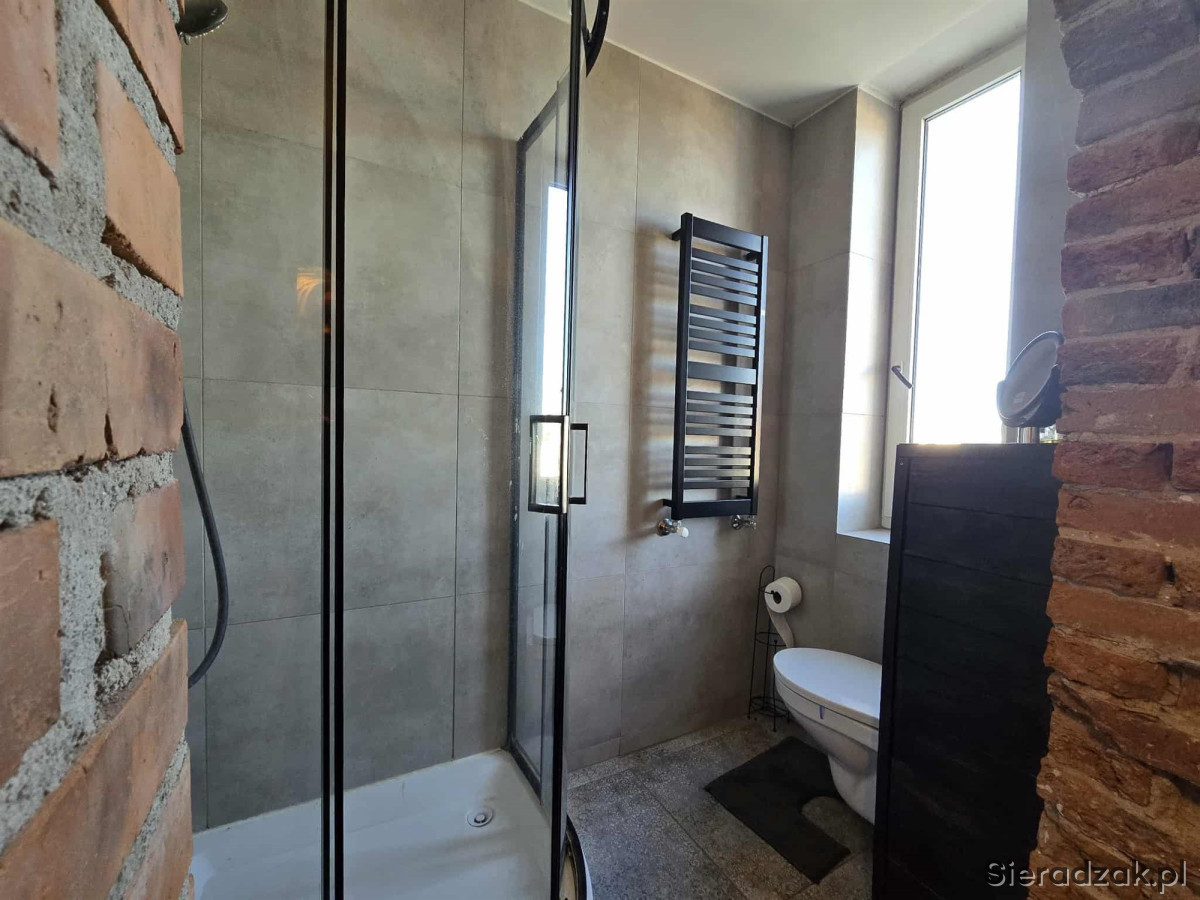 W mieszkaniu został przeprowadzony remont w oryginalnym stylu. W pokojach na ścianach są gładzie gipsowe, a na podłogach w pokojach i kuchni panele, łazienka wyposażona w kabinę prysznicową.