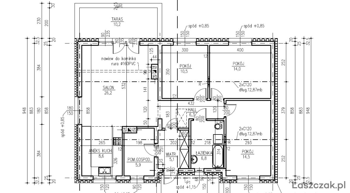 Docieplony styropianem 20 cm. Przygotowano także instalację do podłączenia kominka.