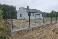 Wokół domu kostka brukowa z której wykonano również taras. Ogrodzenie panelowe.