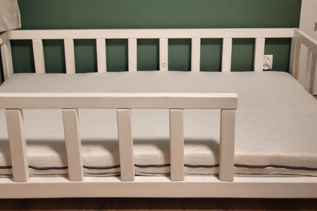 Sprzedam białe, sosnowe łóżko na nóżkach dla dziecka, z materacem 160x80.