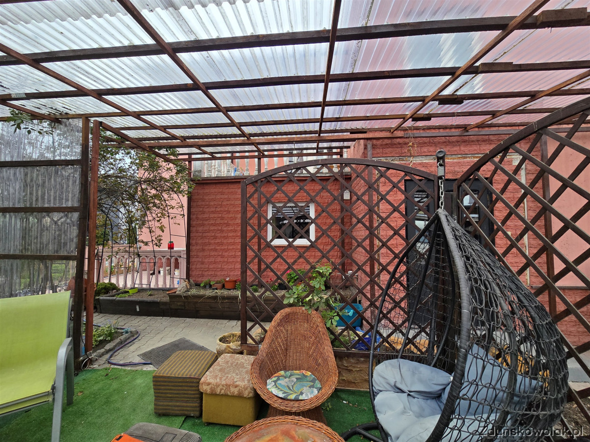 Dom wyposażony jest w okna PCV, co zapewnia dobrą izolację i komfort cieplny. Dodatkowym atutem jest balkon oraz duży taras, idealny do spędzania czasu na świeżym powietrzu.