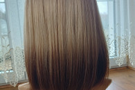 Dodam jeszcze że kształt fryzury to Bob z grzywką włosy z odrostem ombre.