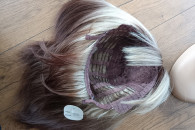 Peruka syntetyczna o długości 35 cm włosa która posiada siatkę z zapięciem regulowanym posiada też metkę ponieważ tak naprawdę nie była noszona.