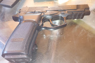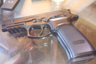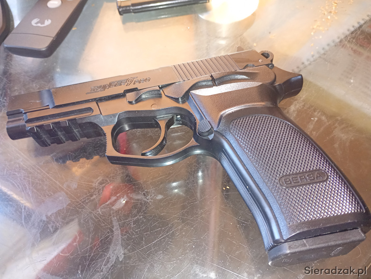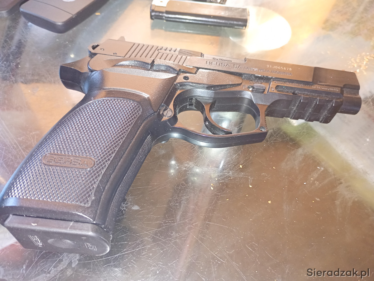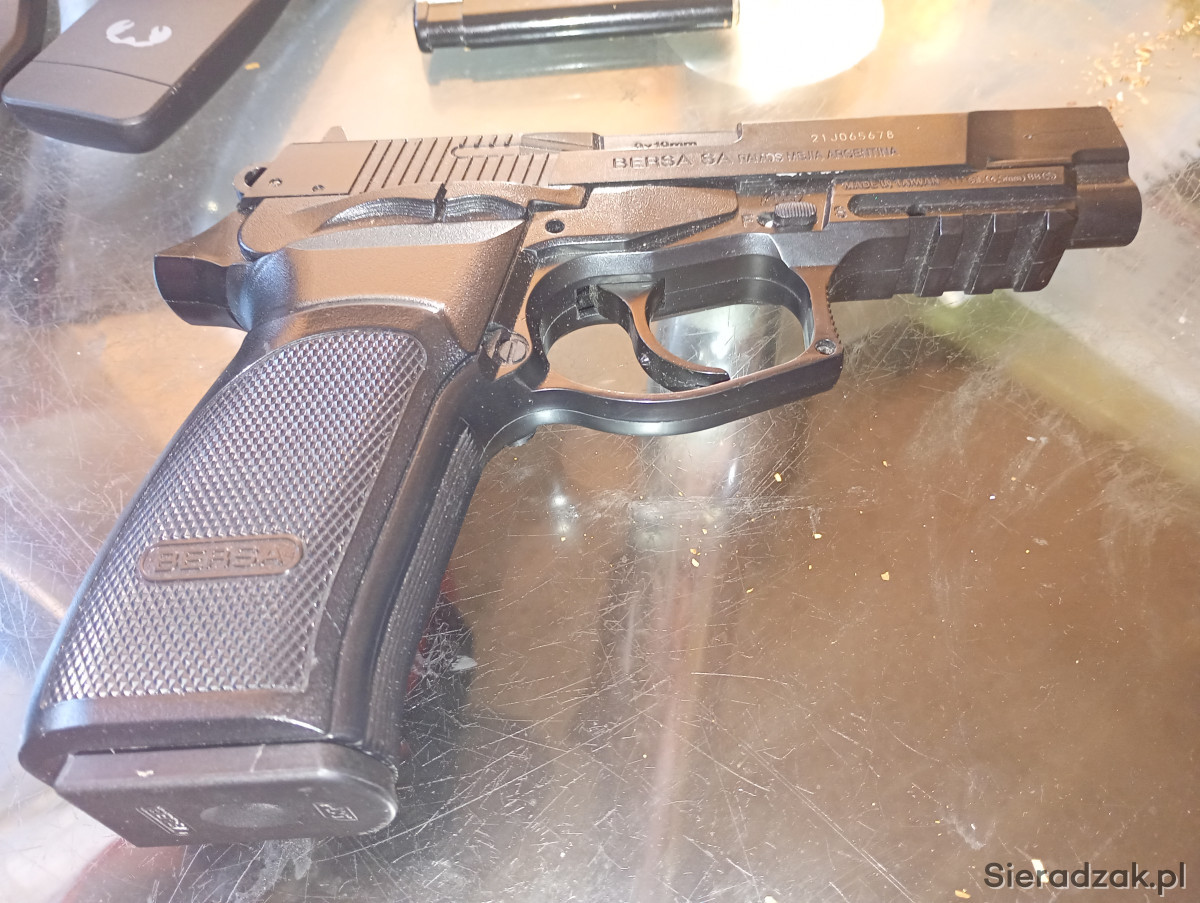 Pistolet gazowy, + full asortyment w tym prawie pełny pojemnik z metalowymi kulkami oraz zapas pełnych naboji gazu +/- 12szt GAZU