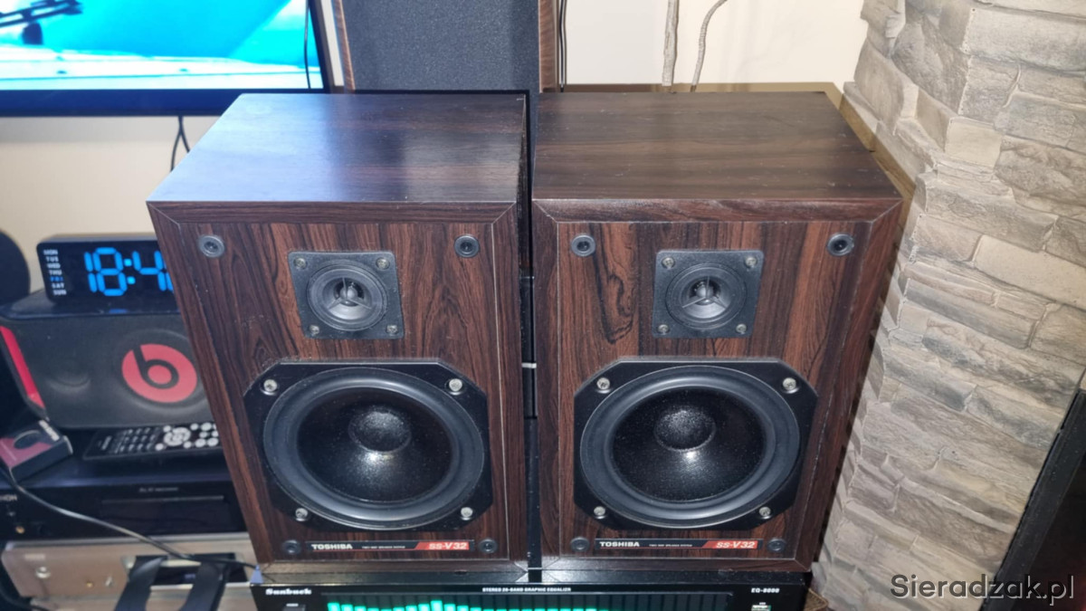 Kolumny monitory TOSHIBA SS-V32 2x40W 8ohm U.K. United Kindgom wyprodukowane w Angli bardzo rzadkie małe monitory podstawkowe regałowe.