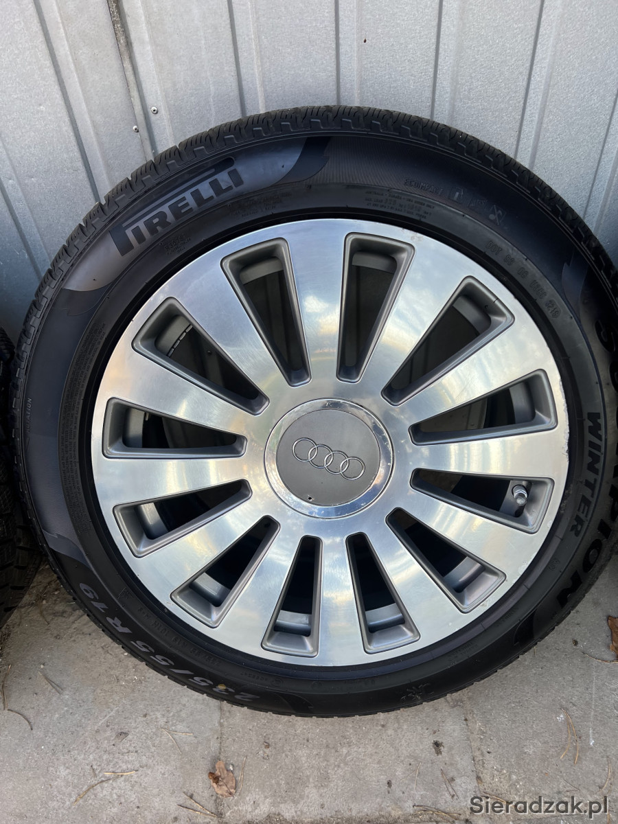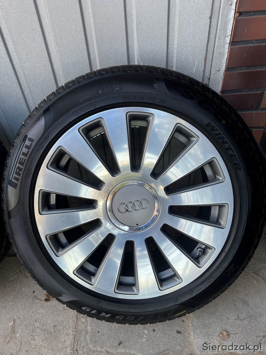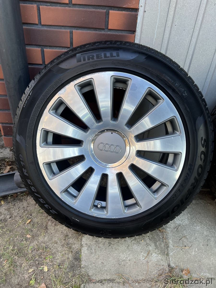 Sprzedam piękne orygianlne felgi Audi pasujące do większości modeli grupy VAG - Audi, Skoda, VW, Seat. Rozstaw śrub 5x112,a opon 235/55/19. Na felgach zamontowane są świetne opony Pirelli Scorpion WInter 2. Opony w świetnym stanie, felgi również w dobrym stanie. Dodatkowo felgi zabezpieczone zostały roczną powłoką ceramiczną. Serdecznie polecam!
