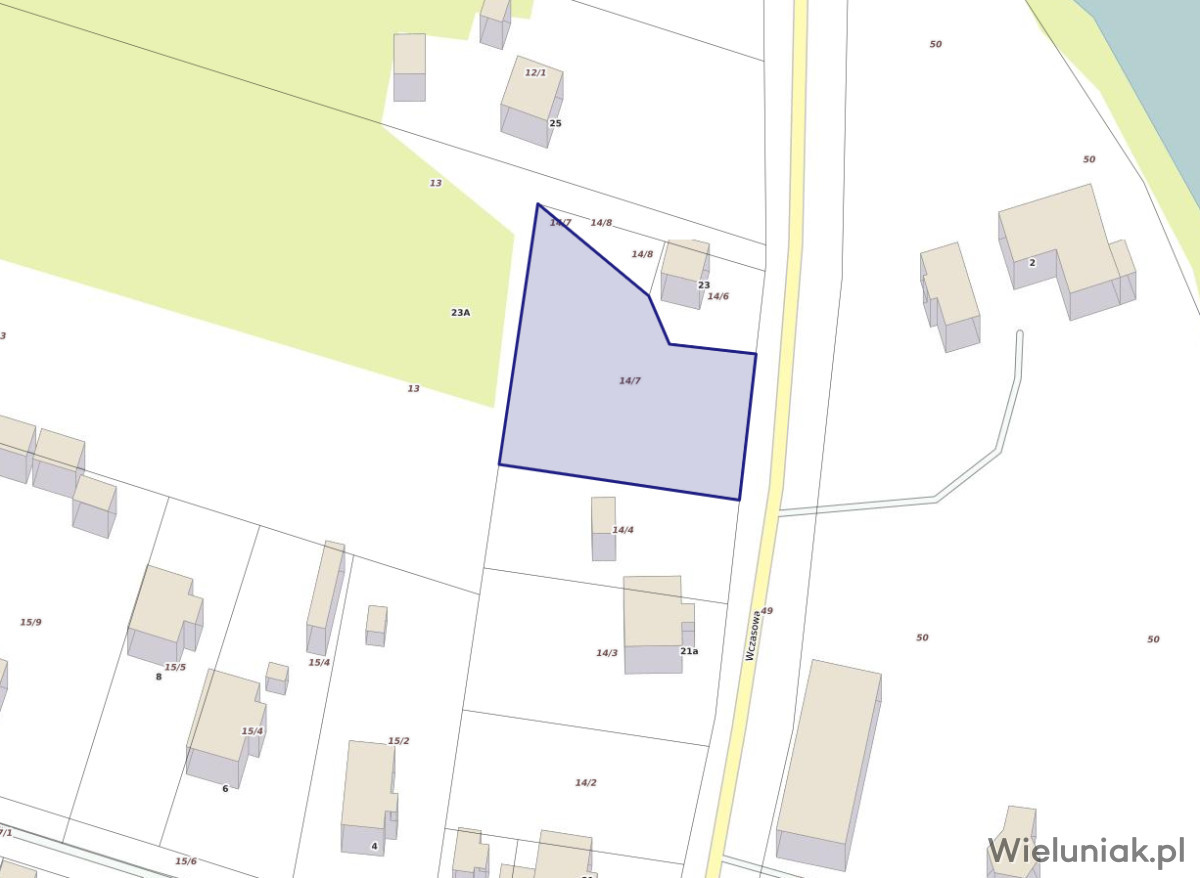 Działka połozona przy trasie z Wielunia do Działoszyna.dojazd do działki drogą asfaltową.Teren okoliczny atrakcyjny,ze względu na tereny lesne i nadrzeczne.