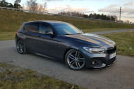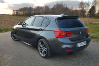 Auto jest po modyfikacjach wizualnych, posiada przedni spojler i tylną lotkę firmy Maxton Design, rozpórki osłony chłodnicy, brewki carbonowe, lusterka carbonowe z pulsacyjnym kierunkowskazem, pasek zaciemniający przednią szybę, tylne przyciemniane szyby, sportowe sprężyny firmy H&R, dystanse 20mm, nakładki sportowe na manetki zmiany biegów, zaciski w kolorze nakładek na manetki, przycisk StartStop w kolorze niebieskim, brak naklejek o modelu i jednostce napędowej na tylnej klapie, brak tylnej wycieraczki na szybie. BMW jest bardzo dobrze wyposażone, posiada najlepszy monitor dostępny w tym modelu z wieloma ustawieniami, jakość i płynność obrazu jest na bardzo wysokim poziomie, nagłośnienie HiFi.