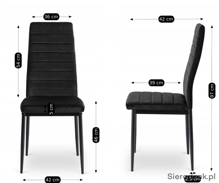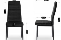 Oferowane krzesła to doskonałe połączenie nowoczesnego designu z wygodą. Wysokie oparcie ma lekko wygięty kształt, żeby lepiej przylegać do pleców, a siedzisko ma wypełnienie z miękkiej pianki tapicerskiej.