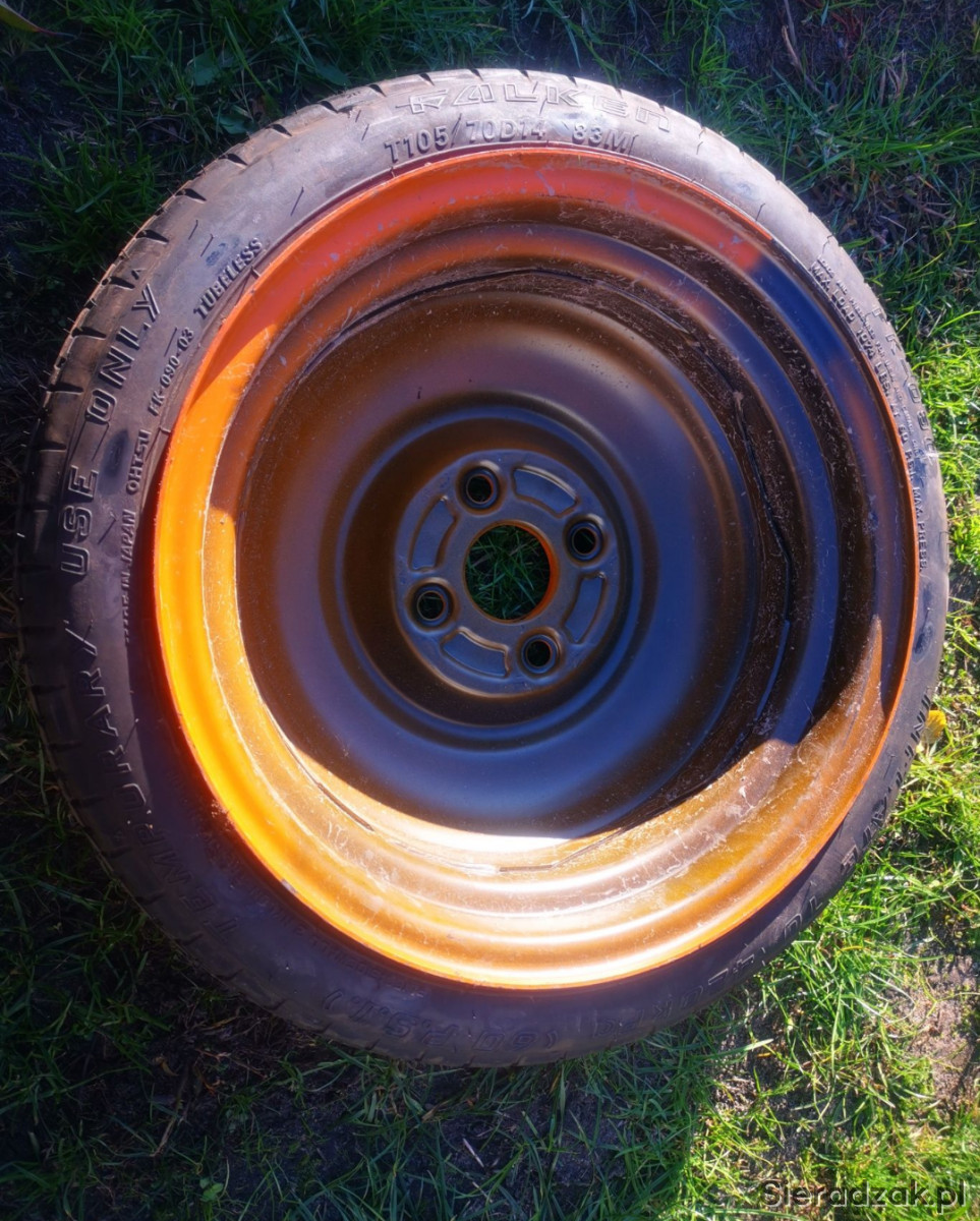 Sprzedam pozostałość po aucie Daihatsu Sirion 1.0 2002s s43kw (ale może pasować do wielu innych aut z takim rozstawem śrub) - koło zapasowe / dojazdowe Falken Fk-090-03 T105/70D1. Według mnie stan jest jakby nie było użyte, ale proszę samemu to zweryfikować po zdjęciach - zrobiłem je z przybliżenia. Polecam.
