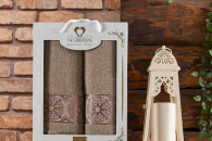 Wyjątkowy zestaw ręczników frotte, wykonany w 100% z naturalnej bawełny. Ręczniki zdobią materiałowe bordiury z dużym, mieniącym się haftem. Klasyczny design dopełni każde wnętrze, a stylowa kolorystyka kolekcji przypadnie do gustu zarówno mężczyznom, jak i kobietom.