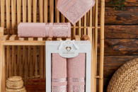 Wyjątkowy zestaw ręczników frotte, wykonany w 100% z naturalnej bawełny. Ręczniki zdobią materiałowe bordiury z dużym, mieniącym się haftem. Klasyczny design dopełni każde wnętrze, a stylowa kolorystyka kolekcji przypadnie do gustu zarówno mężczyznom, jak i kobietom.
